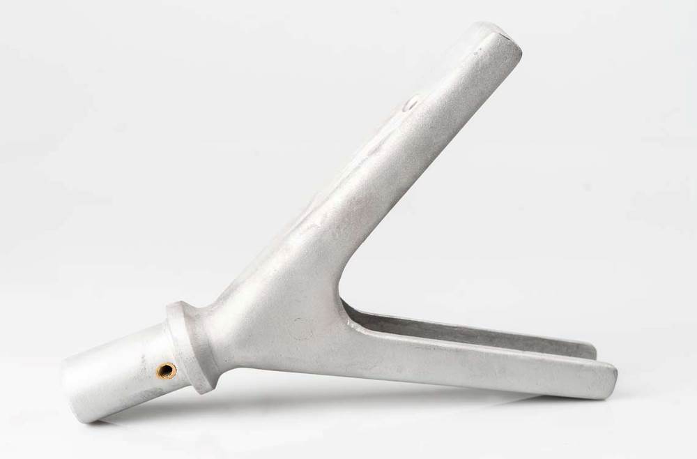 En speciel Y-formet komponent, som også lader sig sandstøbe i aluminium. Klar til videre brug.